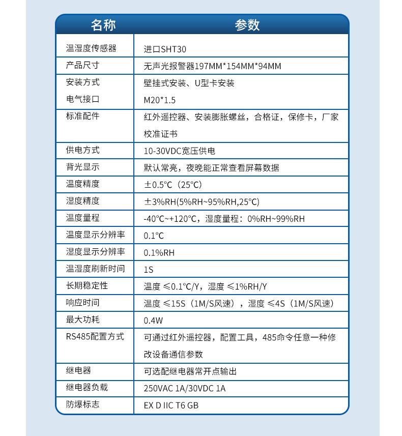 可设内部存储,记录周期:1分-24小时可设置,记录容量:65000组