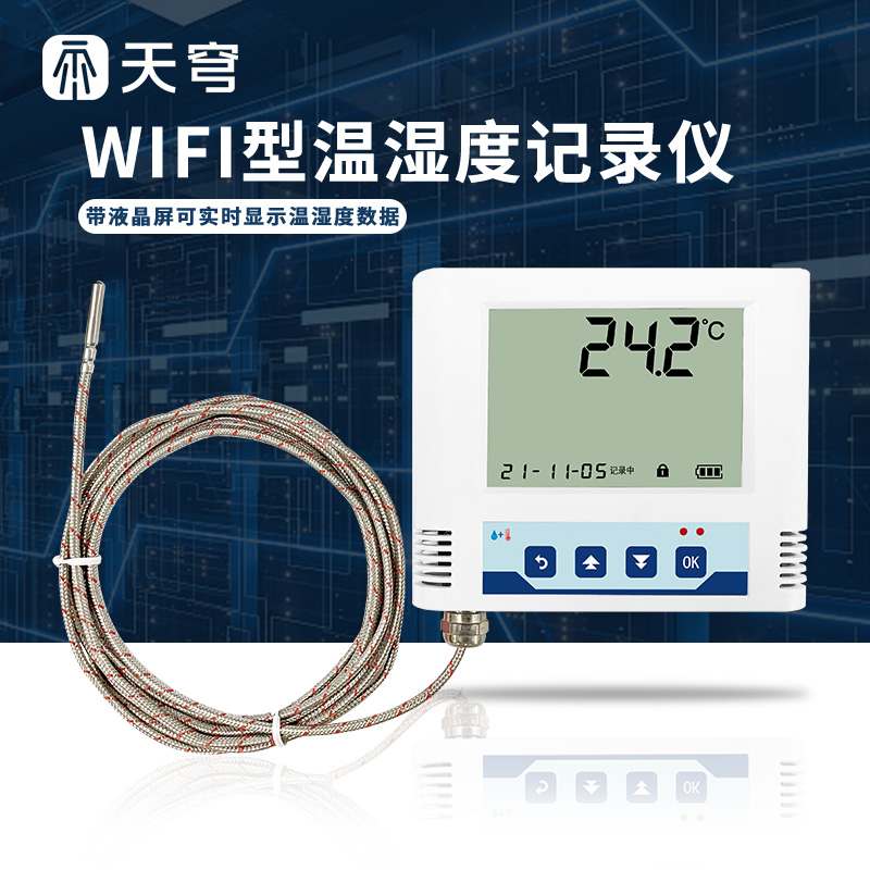 超高低温wifi型温湿度记录仪带有液晶屏可实时显示温湿度数据、设备电量及当前网络连接状态。采用WIFI无线传输,借助现场网络轻松联网上传数据,可选内置电池供电。