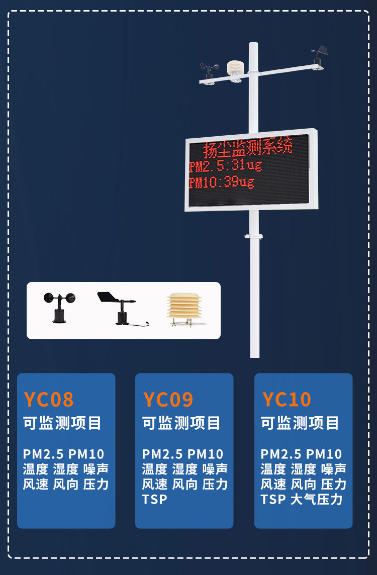 我公司为改善空气质量利用无线传感器技术和激光粉尘测试设备,自主研发的噪声监测仪,除了可以实现扬尘监控以外,还可以监测PM2.5、PM10,PM1.0、TSP、噪声、环境温度,环境湿度,风速、风向等环境因子,各测试点的测试数据通过无线通讯直接上传到监测后台,大大节省了环保部门监测成本,提高监测效率。