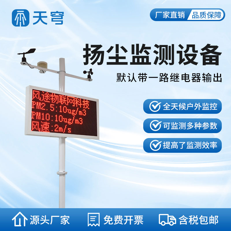 5、默认带一路继电器输出,Pm2.5 超限可自动关联雾炮做现场降尘控制;