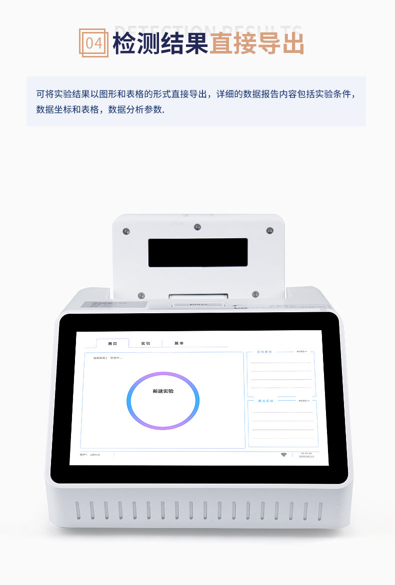 B丰富的报告导出与打印:支持生成并导出多种格式(如PDF、Excel)的实验报告。仪器兼容USB热敏打印机、蓝牙无线打印机及常规A4打印机,可直接在仪器上或通过电脑一键导出并打印专业报告,便于结果存档与即时分享。