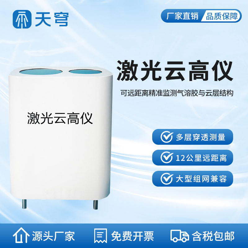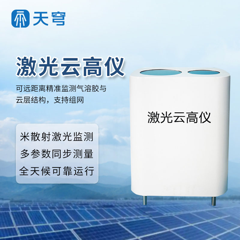 【产品简介】一、云高仪产品概述云高仪是一种采用米散射原理的后散射激光雷达。观测范围可达到12公里,可以有效的测量气溶胶、云层高度,云层厚度、云量和垂直能见度等。它可以应用于复杂的气溶胶研究或者···