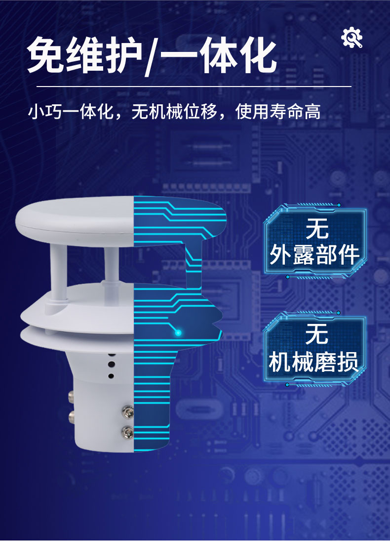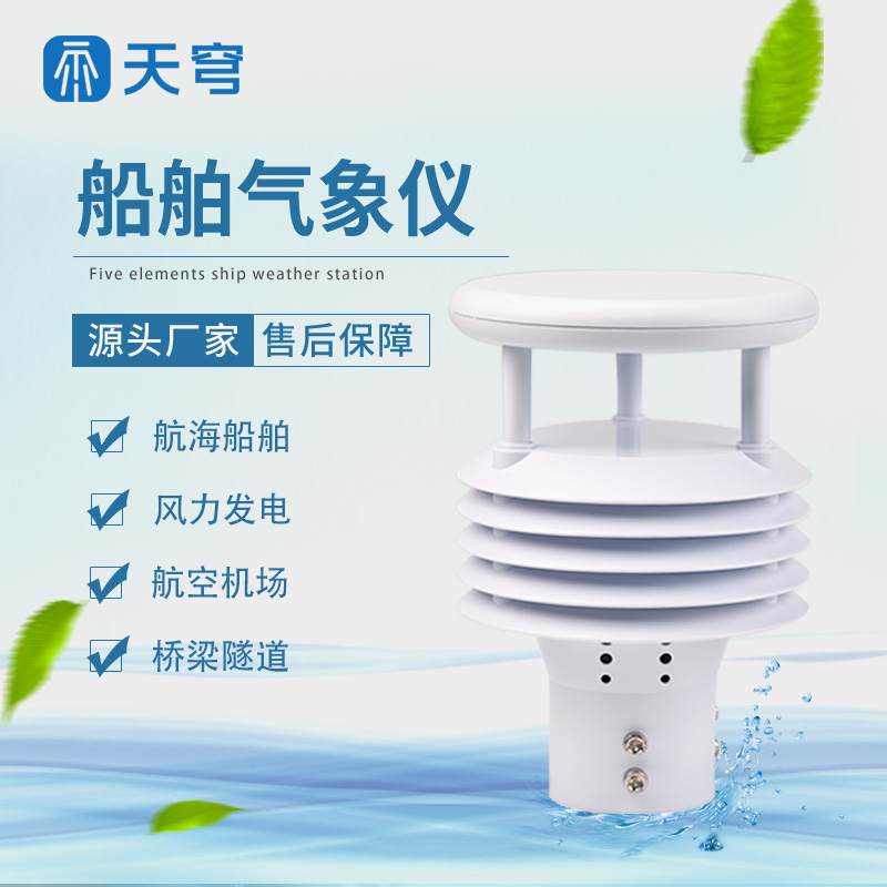 船舶气象仪创新性地将气象标准六参数(环境温度、相对湿度、风速、风向、大气压力、压电雨量)通过一个高集成度结构来实现,可实现户外气象参数24小时连续在线监测,通过数字量通讯接口将六项参数一次性输出给用户。