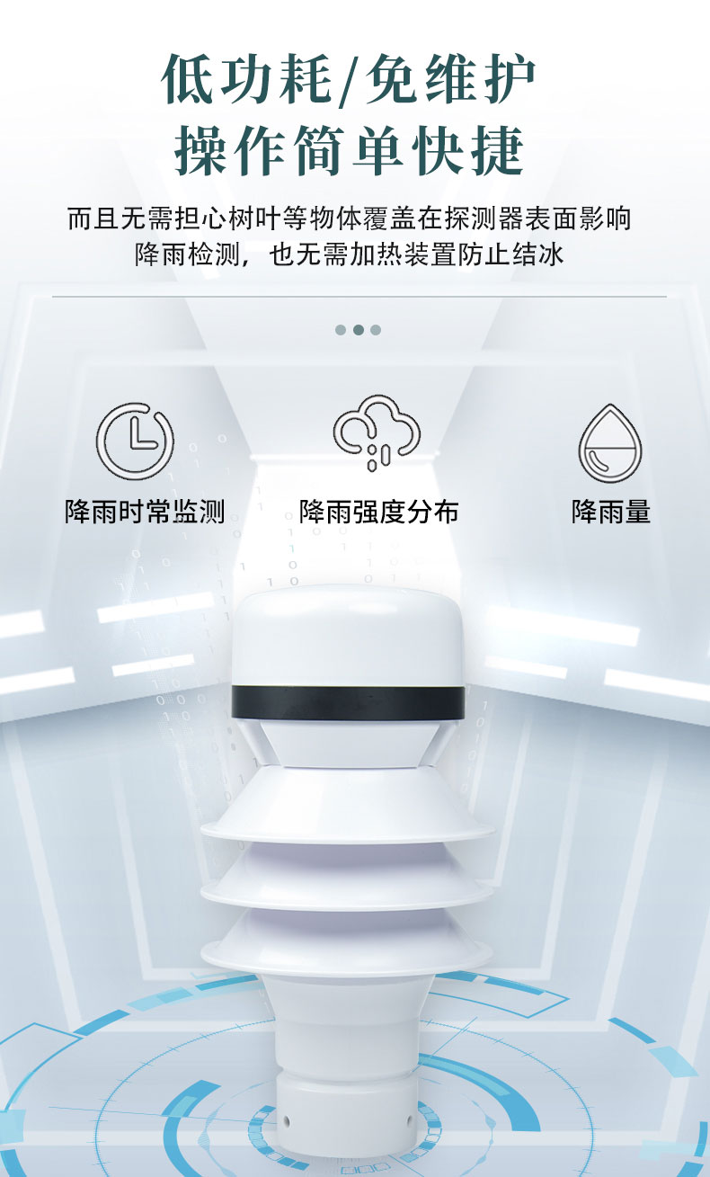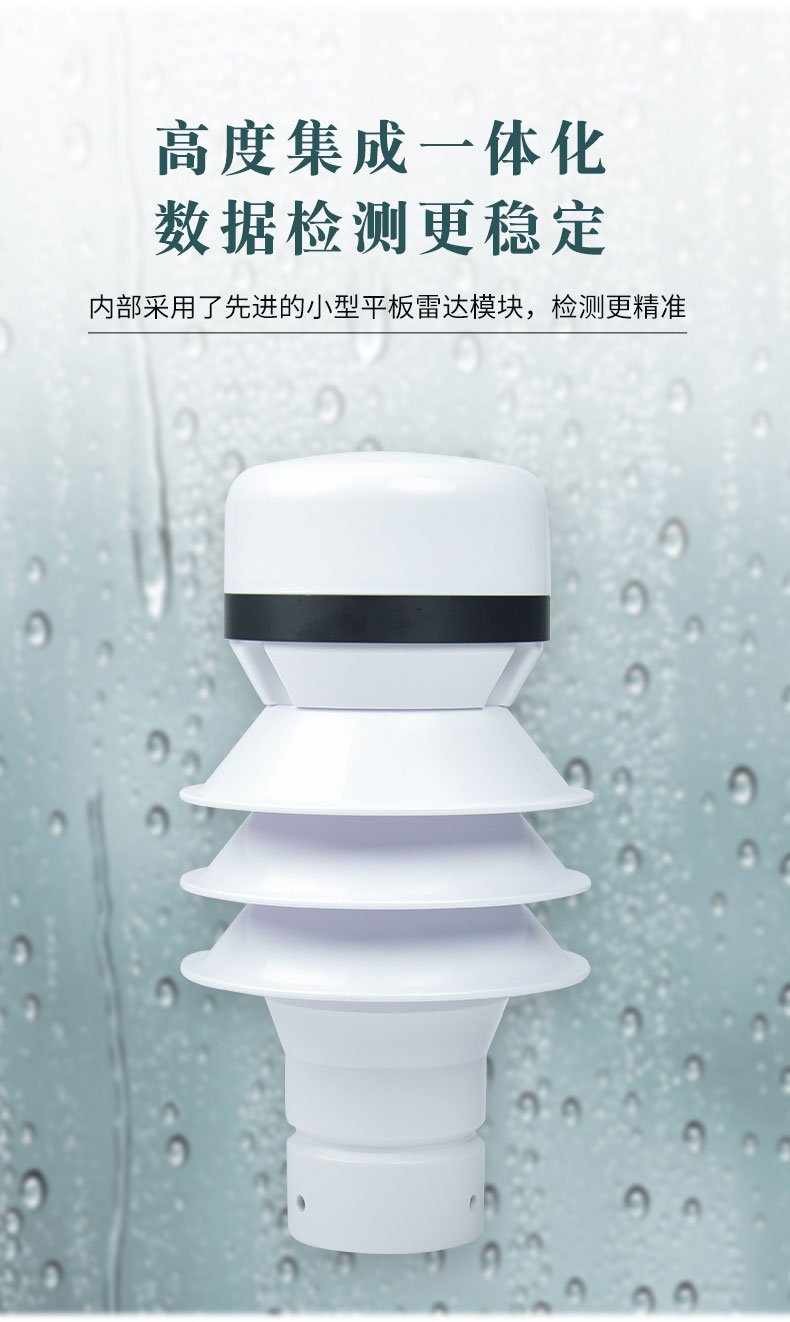 【产品简介】雷达雨量传感器产品介绍雷达雨量传感器内部采用了先进的小型平板雷达模块,使用24GHz的多普勒雷达波技术来测量降雨的水滴下降速度,并可以根据降水水滴的粒径和下降速度分辨出雨、雪和冰雹···