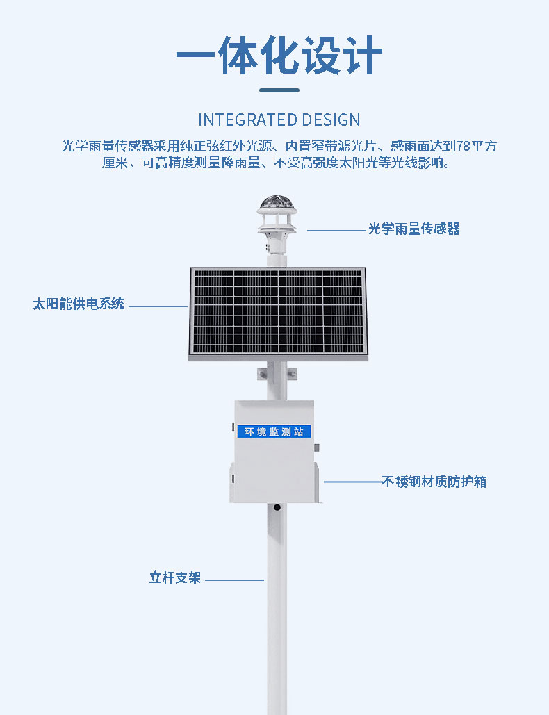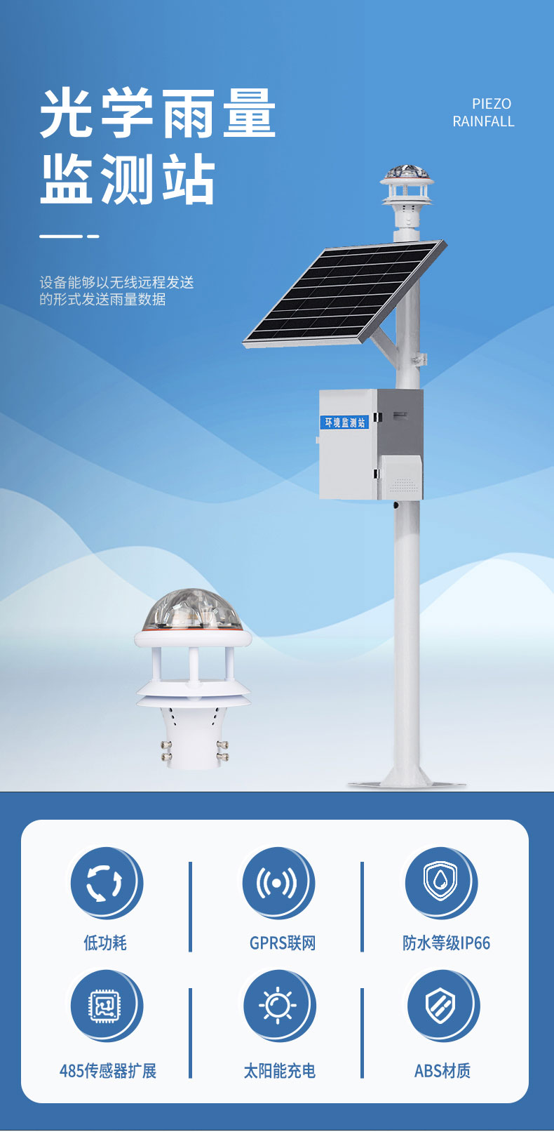 【产品简介】一、光学雨量监测站产品概述YJ3光学雨量监测站是一款以物联网为基础的现代型雨量站,由光学雨量传感器、采集器、太阳能供电系统、立杆支架等组成,设备能够以无线远程发送的形式发送雨量数据···