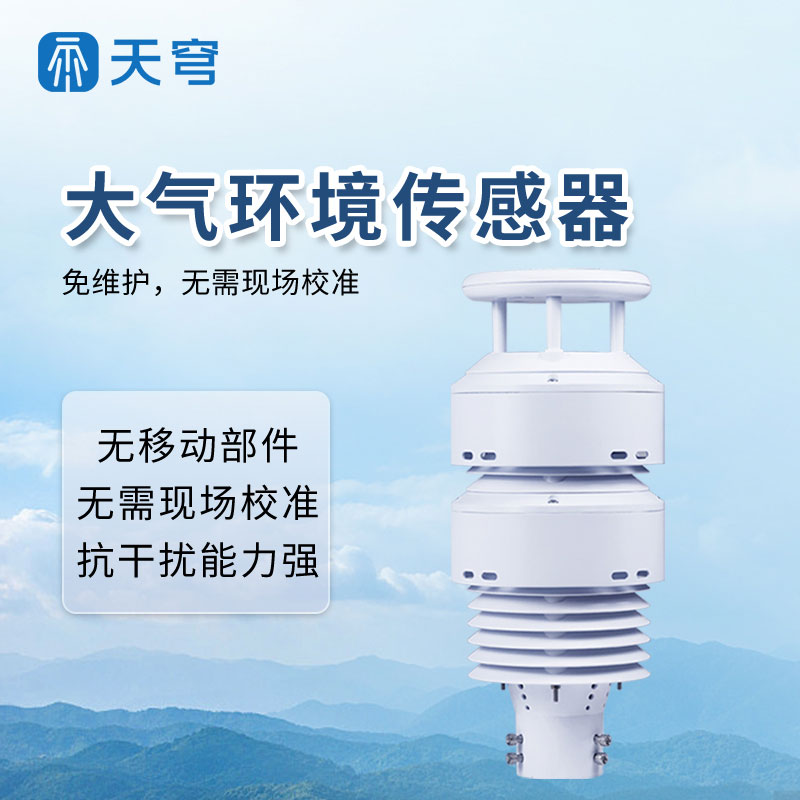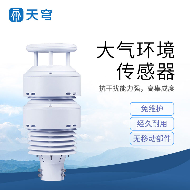 大气环境传感器创新性地将负氧离子、pm2.5、pm10、温度、湿度、气压、氧含量、噪声、风速、风向等气象要素通过一个高集成度结构来实现,可实现户外气象参数24小时连续在线监测,通过数字量通讯接口将十项参数一次性输出给用户。