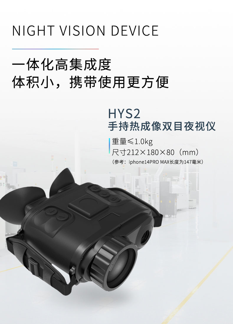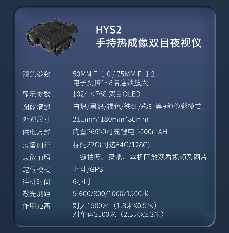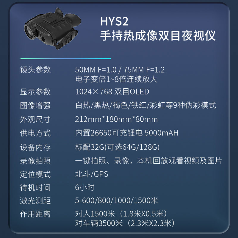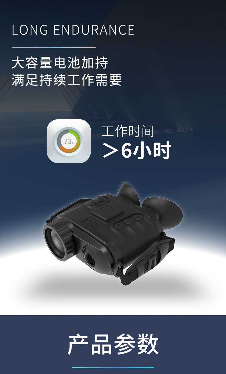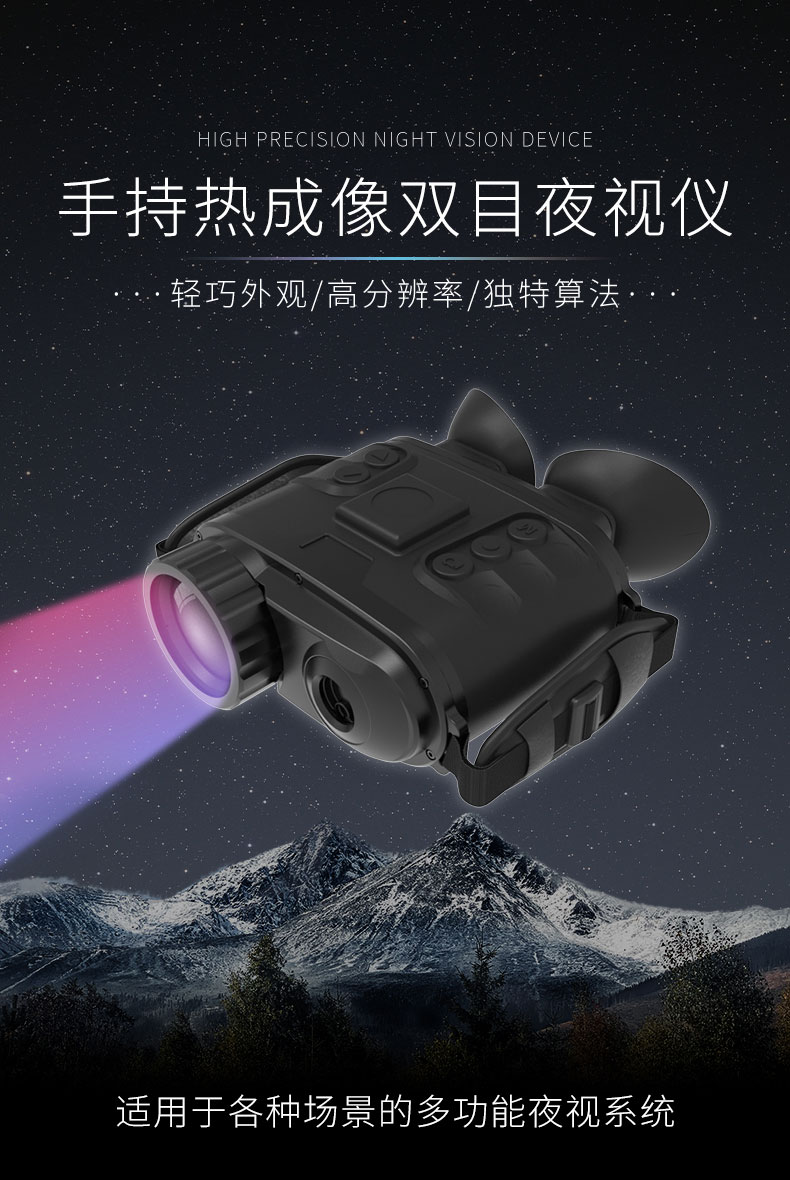 双目多功能热成像系统由远红外热成像系统、双瞳校正系统、高分辨率的OLED成像系统、以及GPS/北斗、激光测距组成,产品一体化集成度高,体积小、重量轻、功耗低,是移动手持透雾和夜视监控的高性价比产品。
