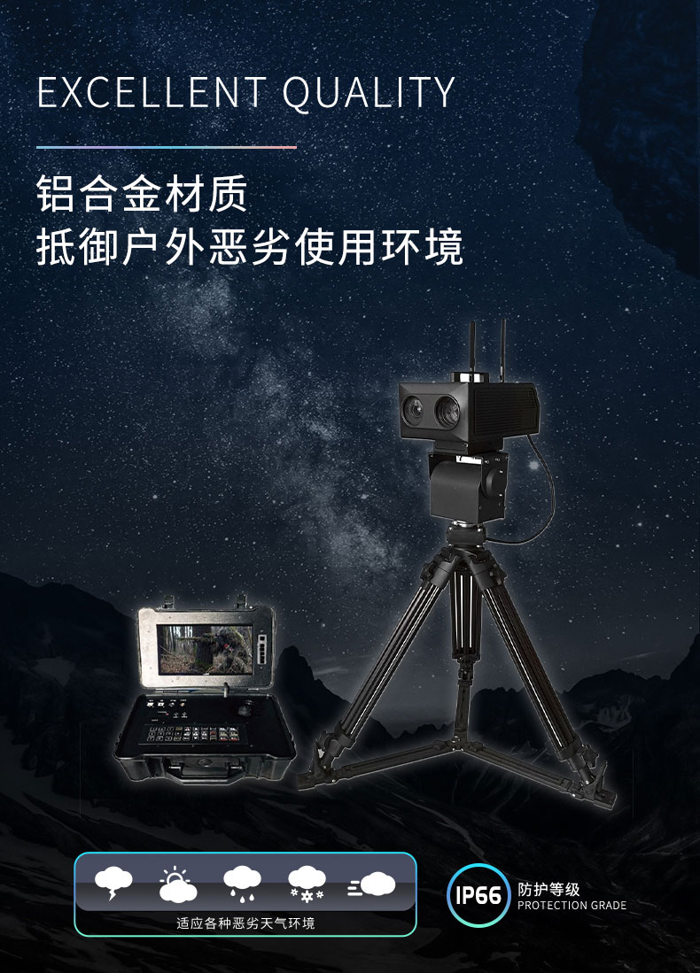 该系统全套设备由进口锂电池供电,携带方便,不受地域环境的影响,更适用于移动式非定点隐蔽监控、录像取证的专业性要求。夜间最远监控距离1500米以上,白天最远监控距离3000米以上。