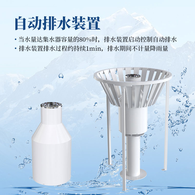 排水装置排水过程约持续1min,排水期间不计量降雨量,排水结束后集水器内会剩余1-2L左右的液体。