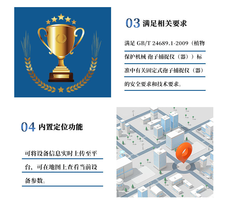 1、满足 GB/T 24689.1-2009(植物保护机械 孢子捕捉仪(器))标准中有关固定式孢子捕捉仪(器)的安全要求和技术要求。