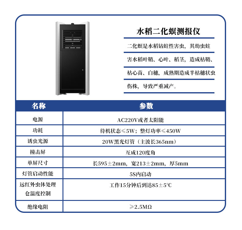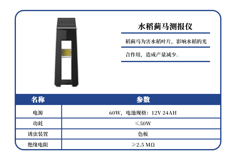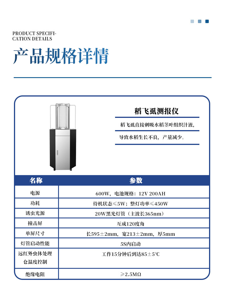 【产品简介】一、稻蓟马测报仪产品描述稻蓟马为害水稻叶片,影响水稻的光合作用,造成产量减少。稻蓟马测报仪根据稻蓟马对特定颜色敏感的原理研制而成,设备集自动调节色板的高度、自动旋转、自动拍照、自动···