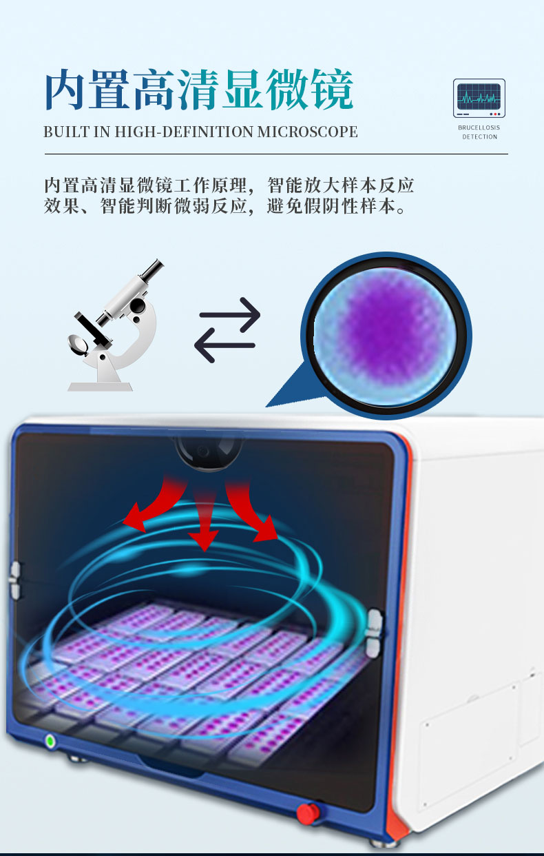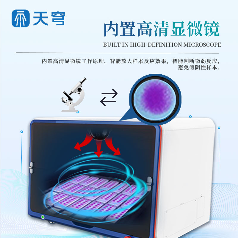 6.结果判读:内置高清显微镜工作原理,智能放大样本反应效果、智能判断微弱反应,避免假阴性样本。
