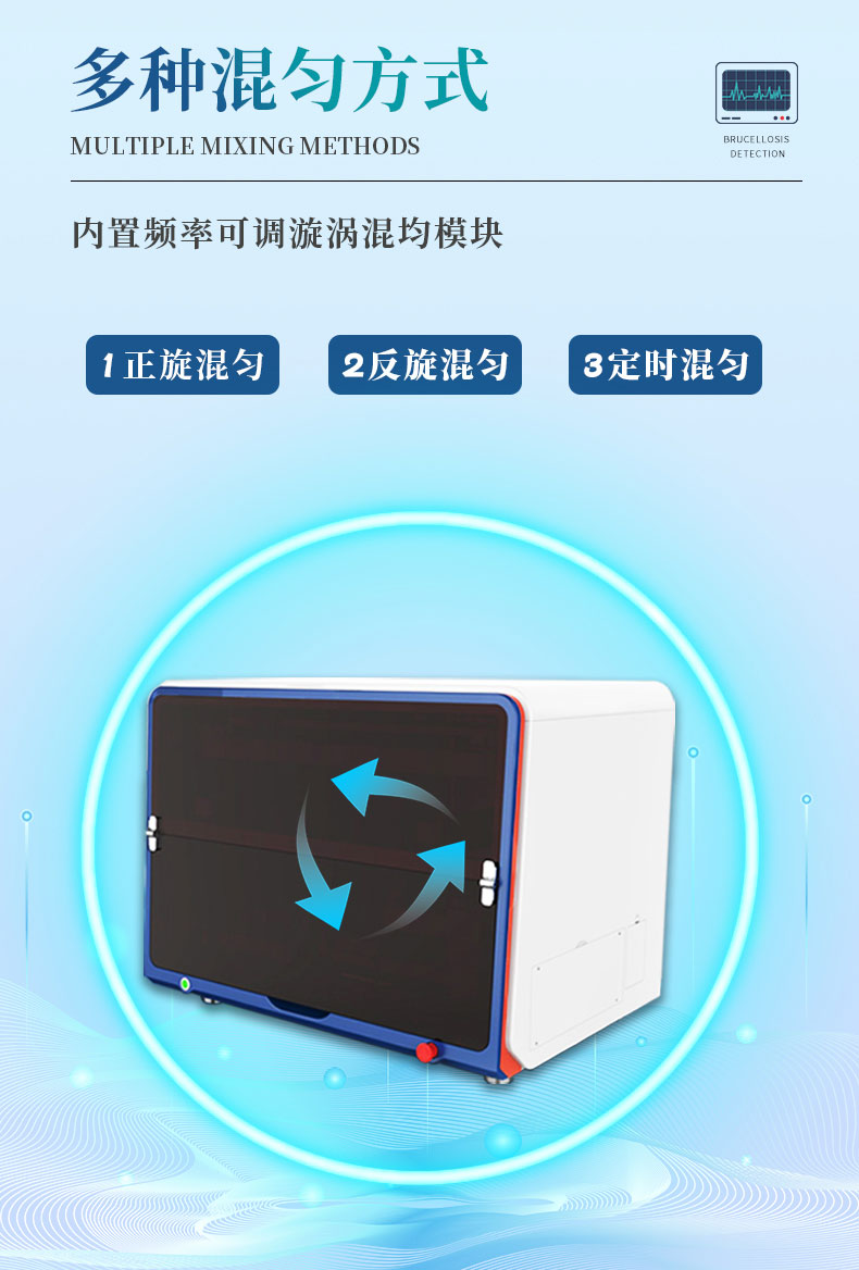 5.混匀方式:内置频率可调漩涡混均模块,可正旋转混匀、反旋转混匀、定时混匀。