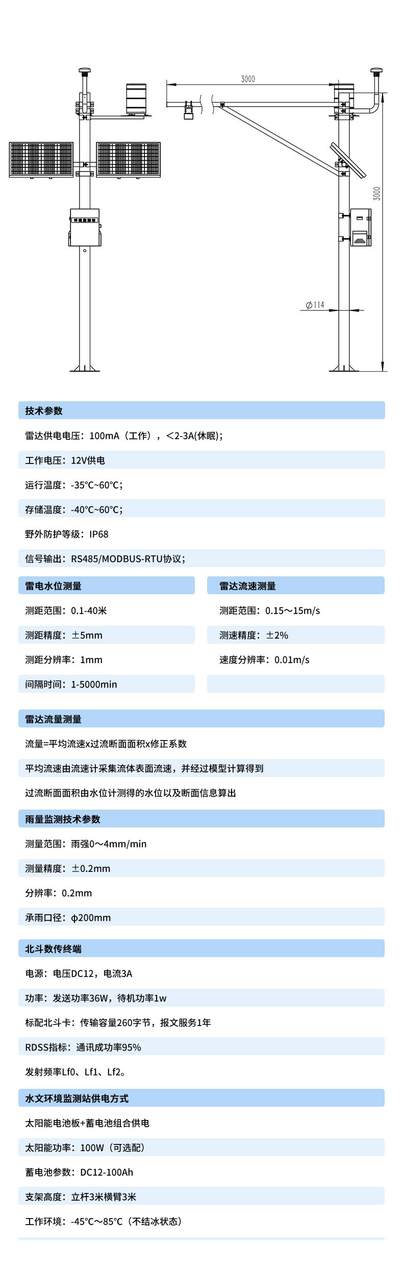 3、流速和水位采用平面阵列雷达天线,自带测量角度功能,设备体积小巧,安装方便。