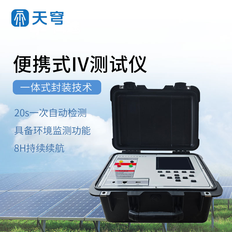 产品为便携式iv测试仪,电压测试可达到1500V,电流测试可达20A,能够测试30kW的光伏组件。可以测试太阳能电池组件/方阵的开路电压、短路电流、最大功率等参数,为用户提供精准、高效的伏安特性测试工具。能够快速检测光伏组串在自然光照下的⼯作特征,设备操作简单,携带方便,且配备高精度辐照计与温度传感器,可提供准确的现场辐照数值等参数。