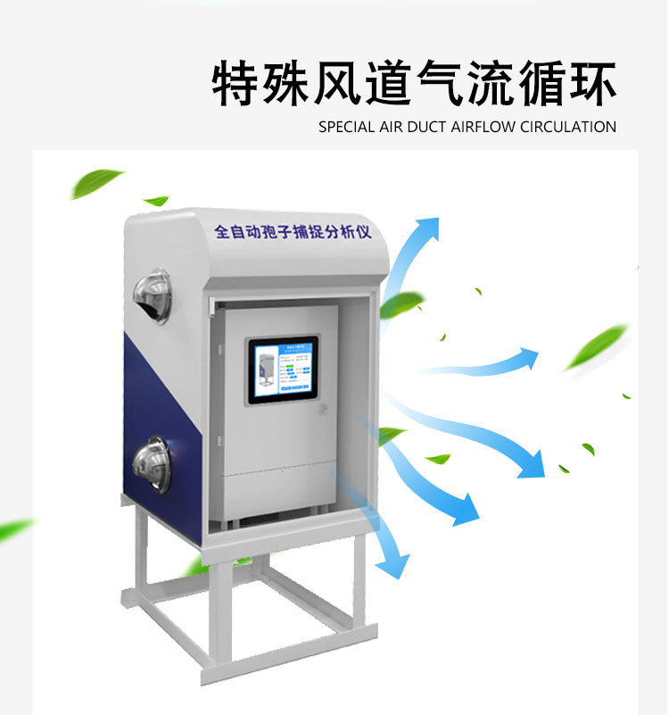 6.经过特殊风道气流循环设计,进出风口形成风道,确保空气的流通性,有效降低采集重复率,缩短了采样时间,提高了采集效率,单次采样可设置吸气口采样时间。