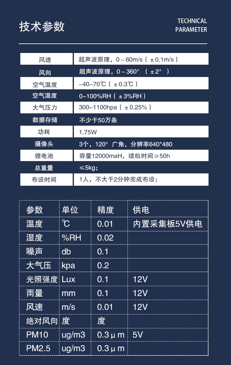 三、车载气象站技术参数