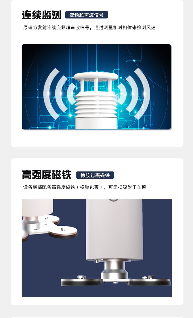 2、原理为发射连续变频超声波信号,通过测量相对相位来检测风速