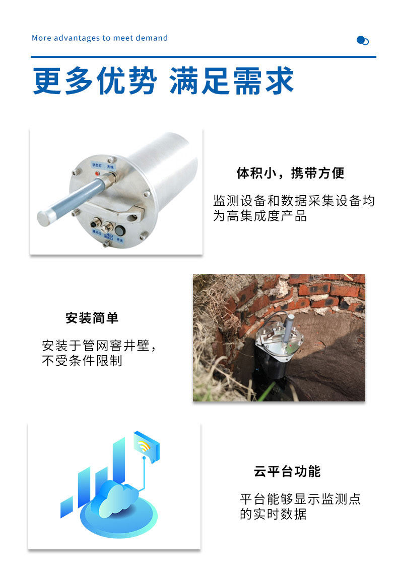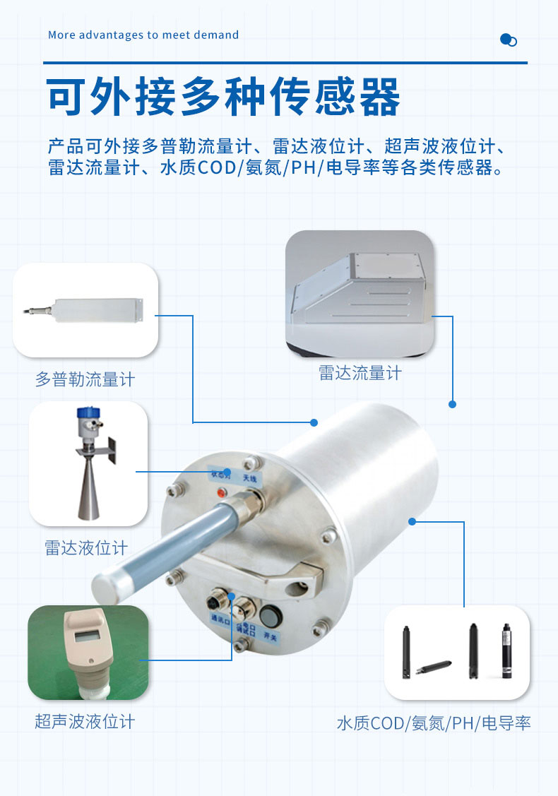 并同时支持选配投入式压力传感器,可通过压力和雷达双传感器测量模式测量管网水位,通过算法分析,确保水位计测量的准确性。