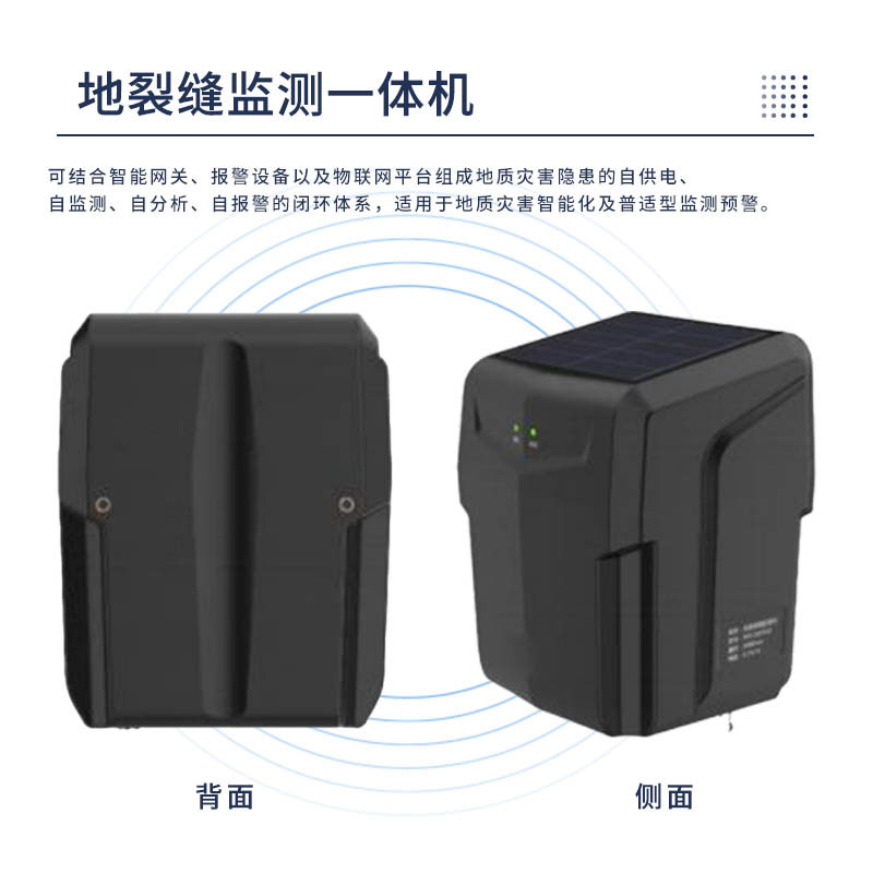 公司本着高精度、低功耗、稳定可靠的原则,设计开发了该款太阳能一体化裂缝监测仪。可结合智能网关、报警设备以及物联网平台组成地质灾害隐患的自供电、自监测、自分析、自报警的闭环体系,适用于地质灾害智能化及普适型监测预警。