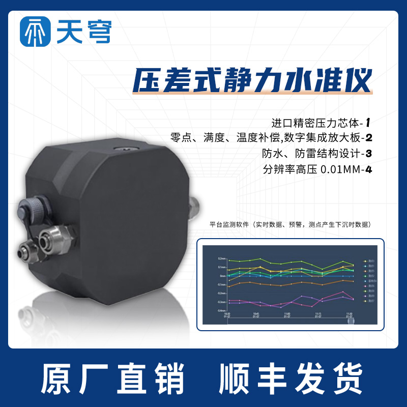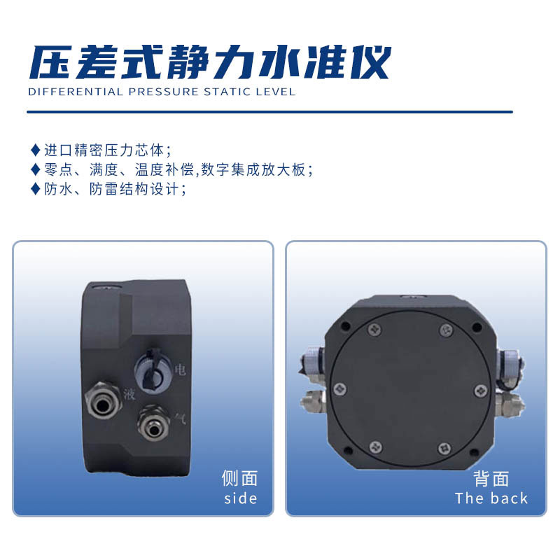 【产品简介】一、液压式静力水准仪产品简介压差式静力水准仪是基于连通器原理,通过测量若干个相互联通的安装于被测量点储液罐液面高度与测量基点(不动点)液罐液面高度的相对变化,反推出各个测点位置相对···
