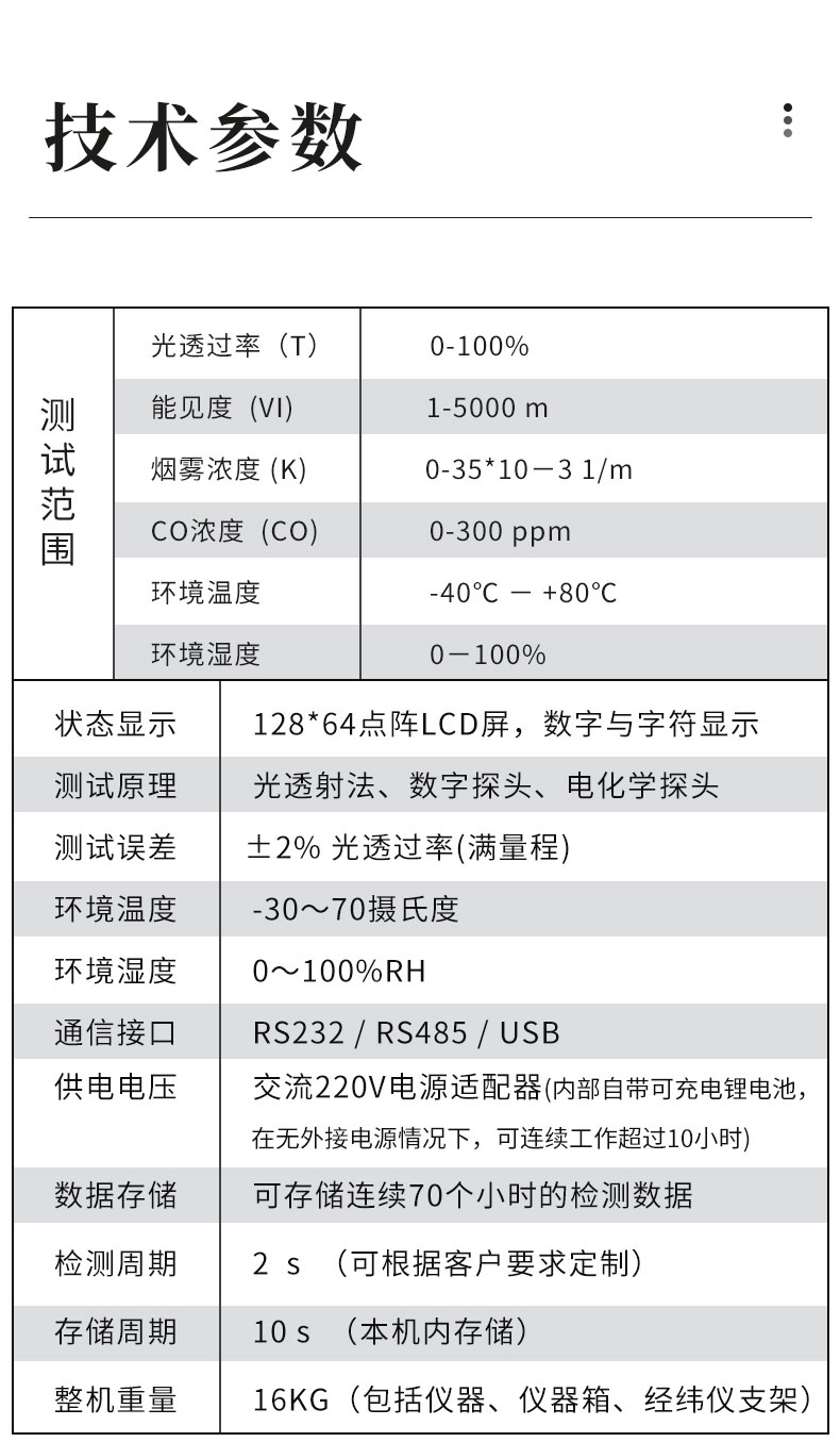 【产品简介】一、便携式光透过率检测仪产品简介便携式光透过率检测仪无需安装调试,通电即可检测,LCD屏上实时显示检测数据。考虑到隧道内恶劣的自然环境,不便于同步连接笔记本电脑来存储数据,仪器内部···