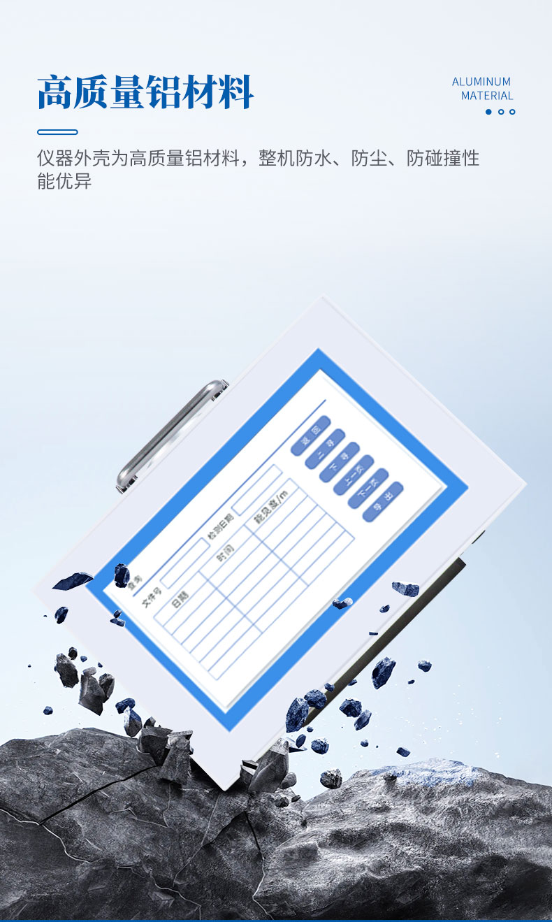 5、仪器外壳为高质量铝材料,整机防水、防尘、防碰撞性能优异;