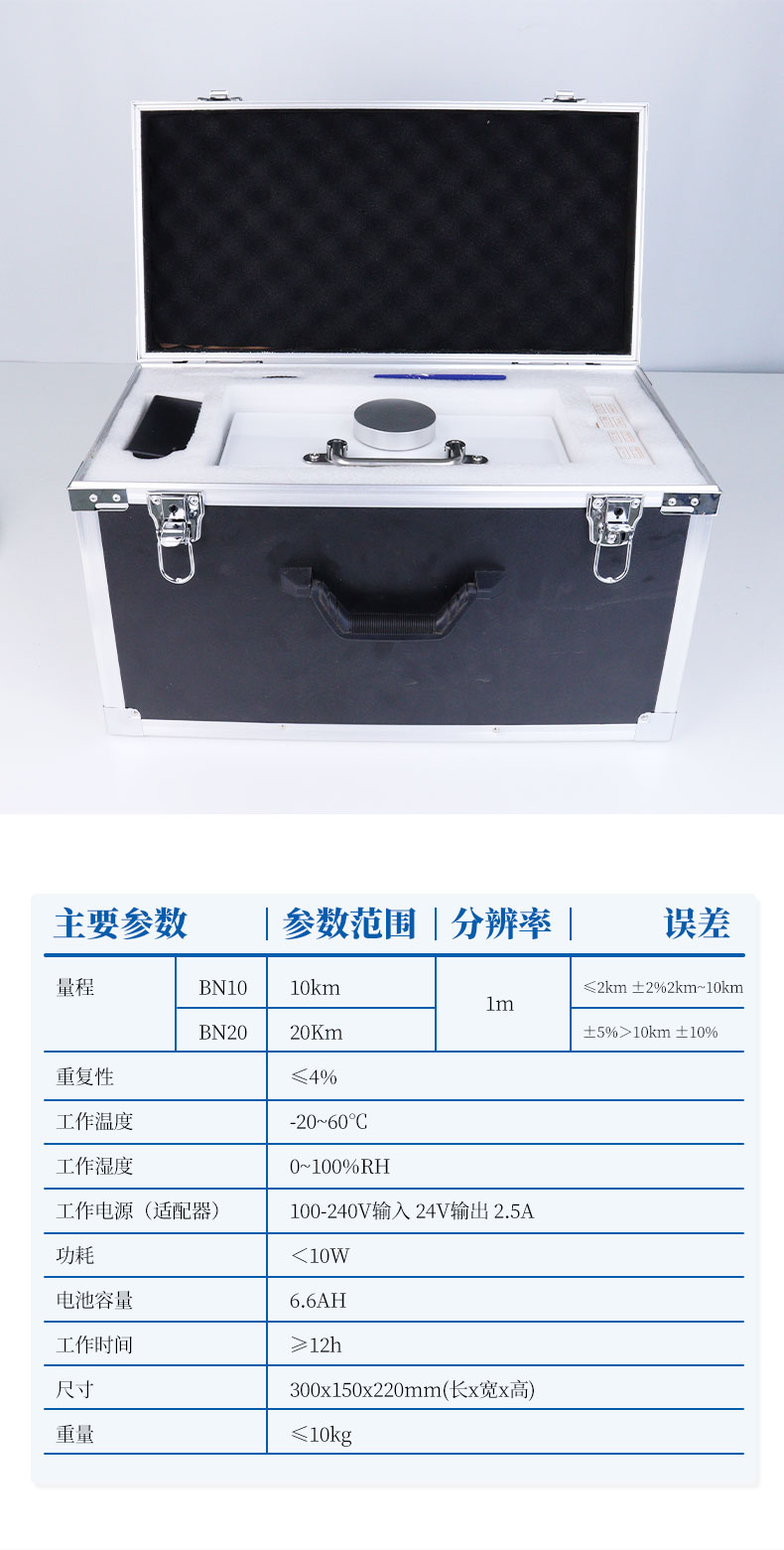 | 量程 | BN10 | 10km☆ | 1m | ≤2km ±2%2km~10km ±5%>10km ±10% |