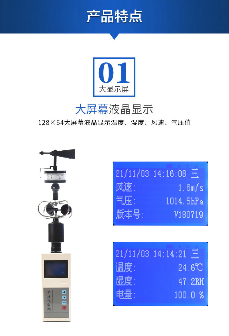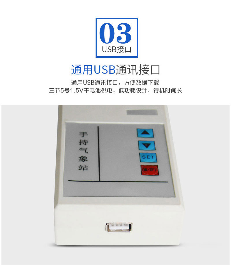 手持式风速风向仪是一款携带方便,操作简单,集多项气象要素于一体的可移动式气象观测仪器。系统采用精密传感器及智能芯片,能同时对风向、风速两项气象要素进行准确测量。内置大容量FLASH存储芯片可存储至少一年的气象数据;通用USB通讯接口,接入U盘导出数据,方便用户对气象数据的进一步处理分析。