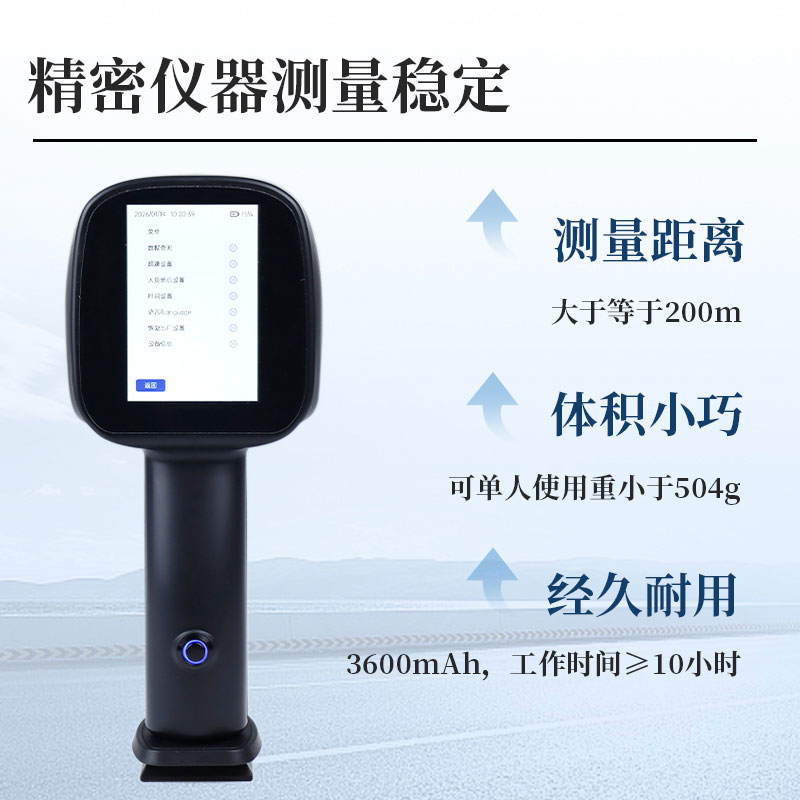 便携式机动车测速仪依据多普勒效应,通过向车辆方发出无线电波,当电波的能量撞击车辆时,波的能量一小部分返回雷达设置天线;根据返回信号频率不同,测定车辆速度,支持车载动态测速。