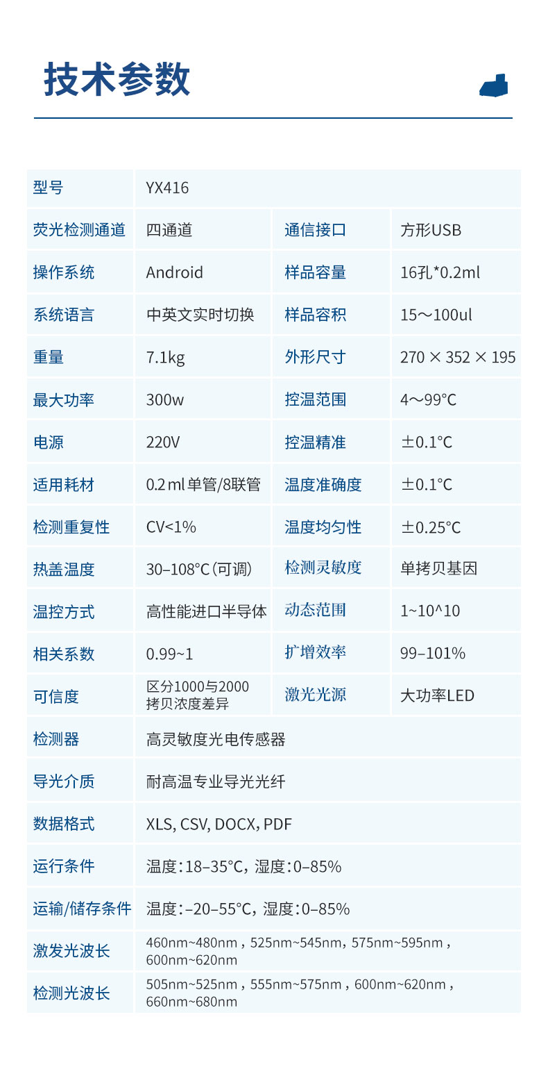 | 适用耗材 | 0.2ml单管、8×0.2ml排管 |