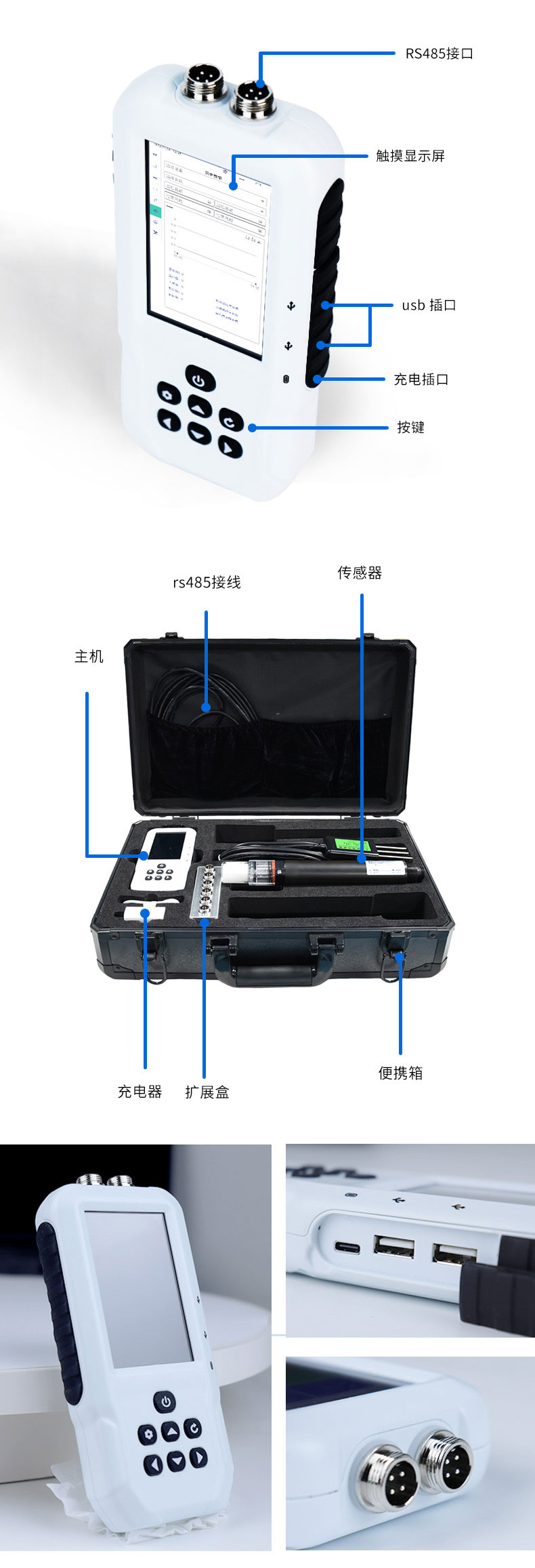 3.自动识别传感器:插入不同参数的传感器后,主机能够自动识别,确保传感器之间的一致性,不影响测量精度。
