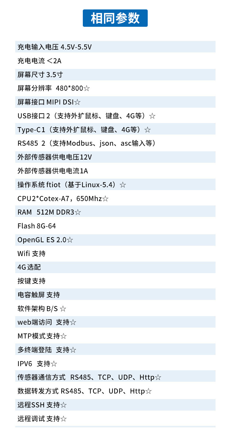 | 传感器通信方式 | RS485、TCP、UDP、Http☆ |
