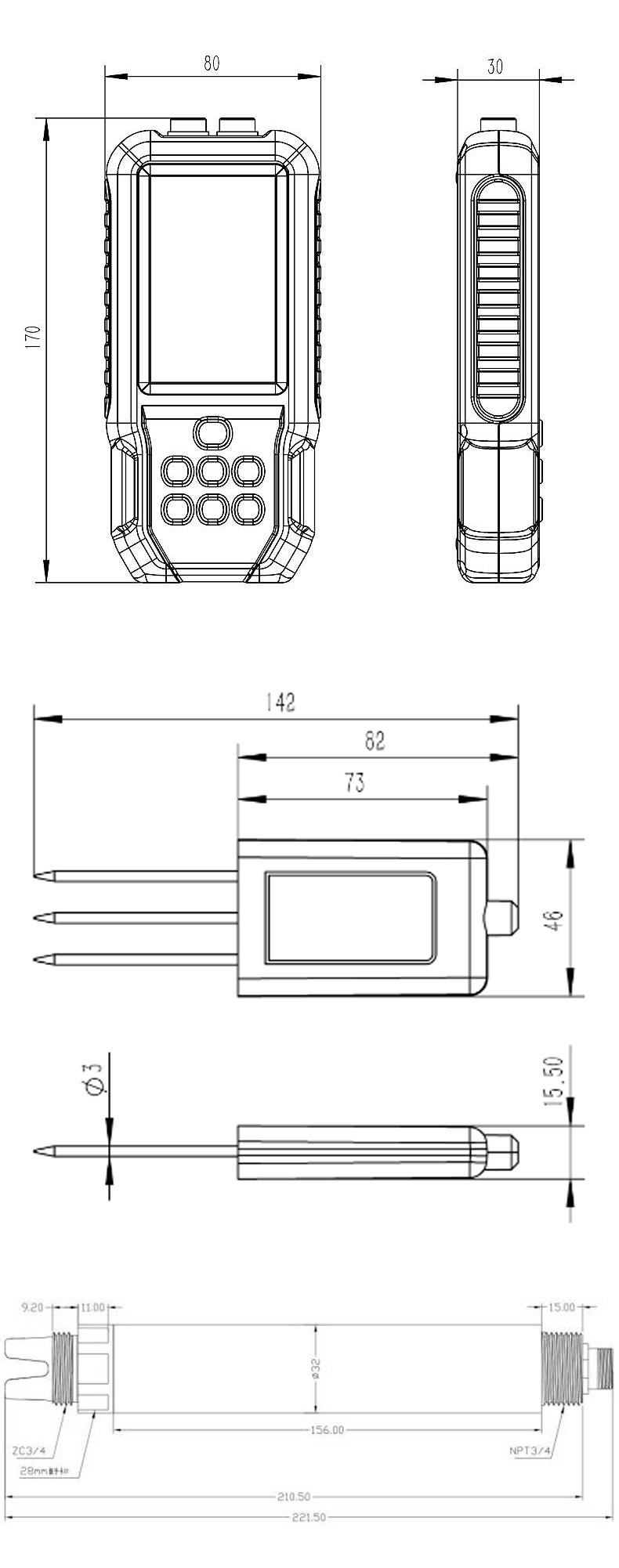 | 土壤温度 | 测量范围:-30~70℃ 精度:±0.3(-10~50℃) 分辨率:0.01℃ |