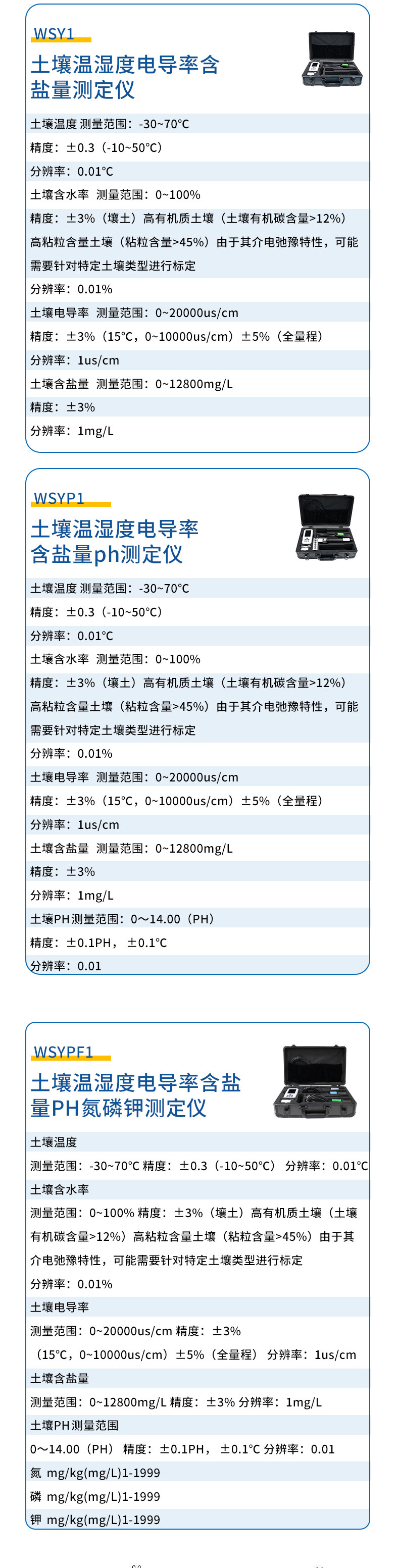 三、土壤温湿度测定仪技术参数