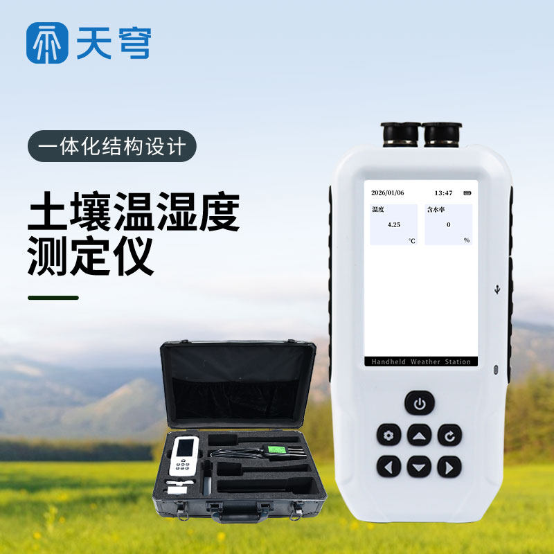 土壤温湿度测定仪是一款高度集成的多功能环境监测设备,采用一体化结构设计,能够快速、准确地测量土壤中的含水量、温度。该仪器不仅适用于多地点、不同深度土壤参数的即时检测,还支持长期连续监测,为用户提供详尽的土壤数据分析。