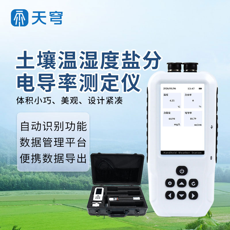 2.同时显示电导率和含盐量:直接提供土壤电导率和含盐量的数值,省去了用户的手动计算步骤,使读数更加直观清晰。