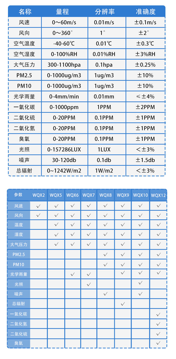 三、超声波风速风向仪技术参数