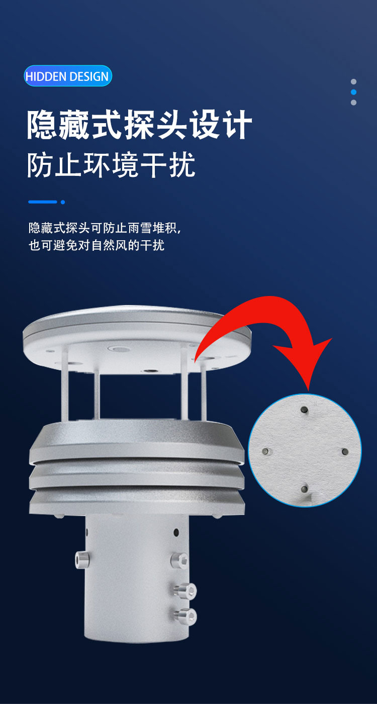 2、风向:测量原理超声波,0~360°(±2°);分辨率:1°;(发明专利,专利号ZL 2021 1 0237536.5)