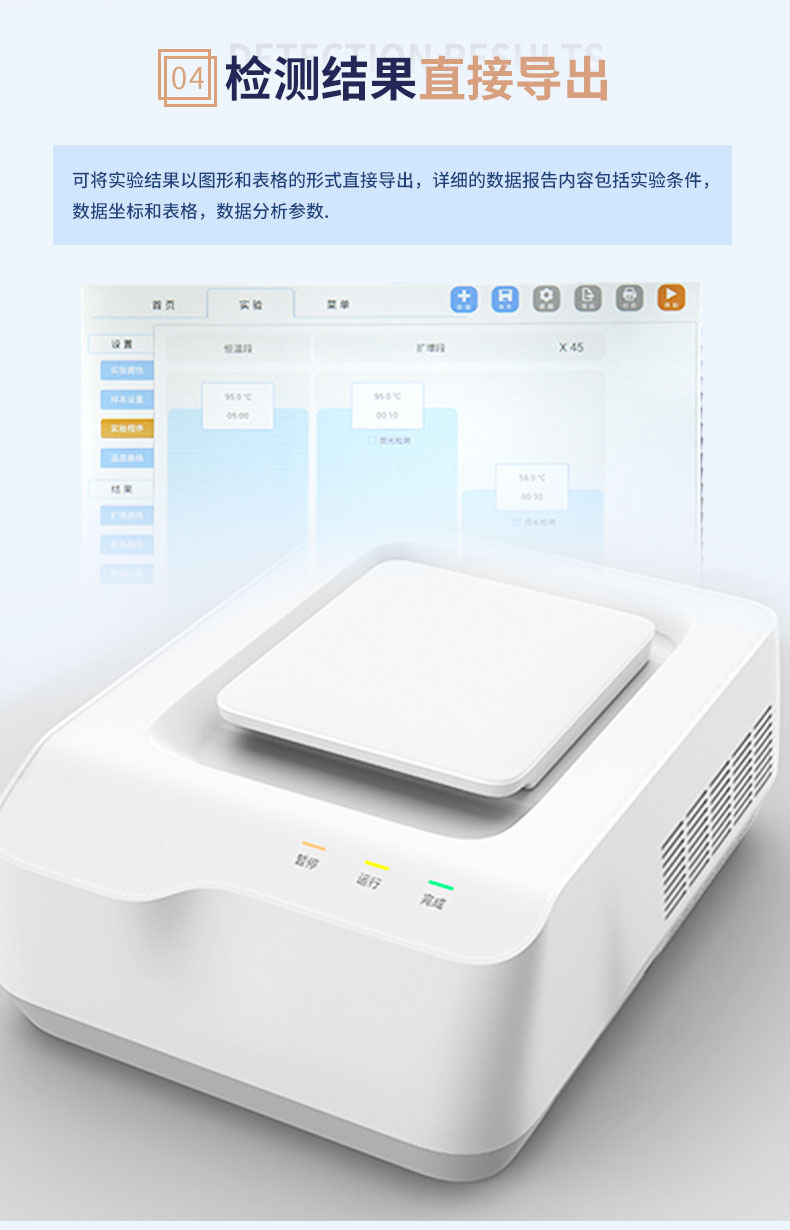 4通道48孔荧光定量PCR仪是实时检测反应的仪器,主要由基因扩增热循环系统、荧光实时检测系统、微电路控制系统、计算机及应用软件组成。其中两个核心功能模块:热循环系统和荧光实时检测系统。其中基因扩增热循环系统工作原理与传统基因扩增仪工作原理基本相同,采用半导体加热制冷工作方式完成热循环过程。荧光检测系统主要有由荧光激发部件、光信号传输部件、荧光检测部件、控制系统组成。