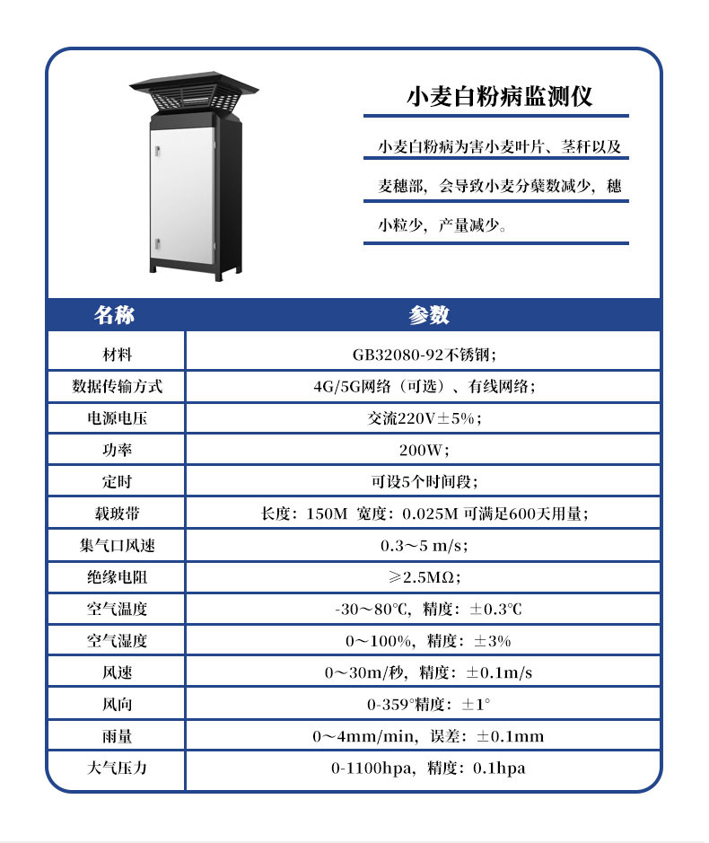 【产品简介】一、小麦黏虫监测仪简介黏虫是一种多食性、迁移性、间歇爆发性害虫,爆发时可把作物叶片食光,严重损害作物生长。小麦黏虫监测仪专为农林虫情测报而研制,该灯利用现代光、电、数控技术,实现了···