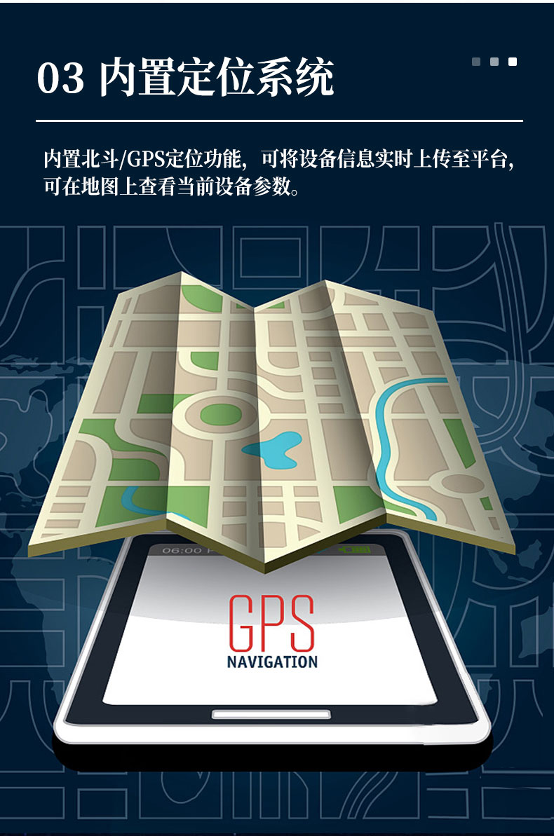 8、内置北斗/GPS定位功能,可将设备信息实时上传至平台,可在地图上查看当前设备参数。